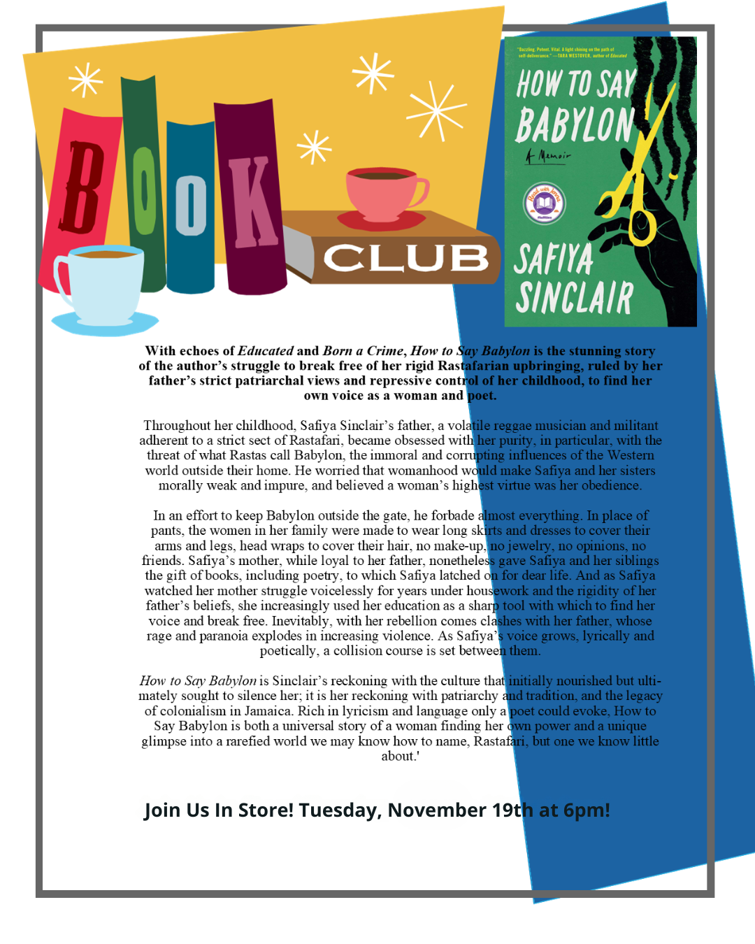 🔹Our November book club pick is, How To Say Babylon, by @safiyasinclair, and we can’t wait to see you guys for discussion!